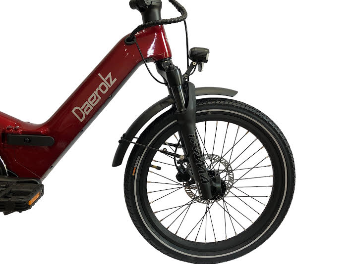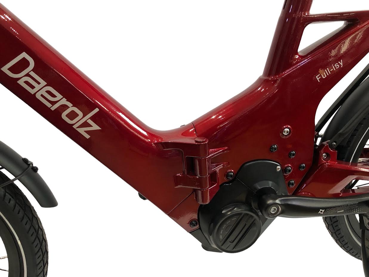 Daerolz Full Isy, un vélo pliable électrique alliant élégance et performance. Conçu pour les amoureux de la mobilité douce, ce bijou technologique est équipé d’une fourche et d’un amortisseur intégrés dans le cadre pour une expérience de conduite fluide et confortable.